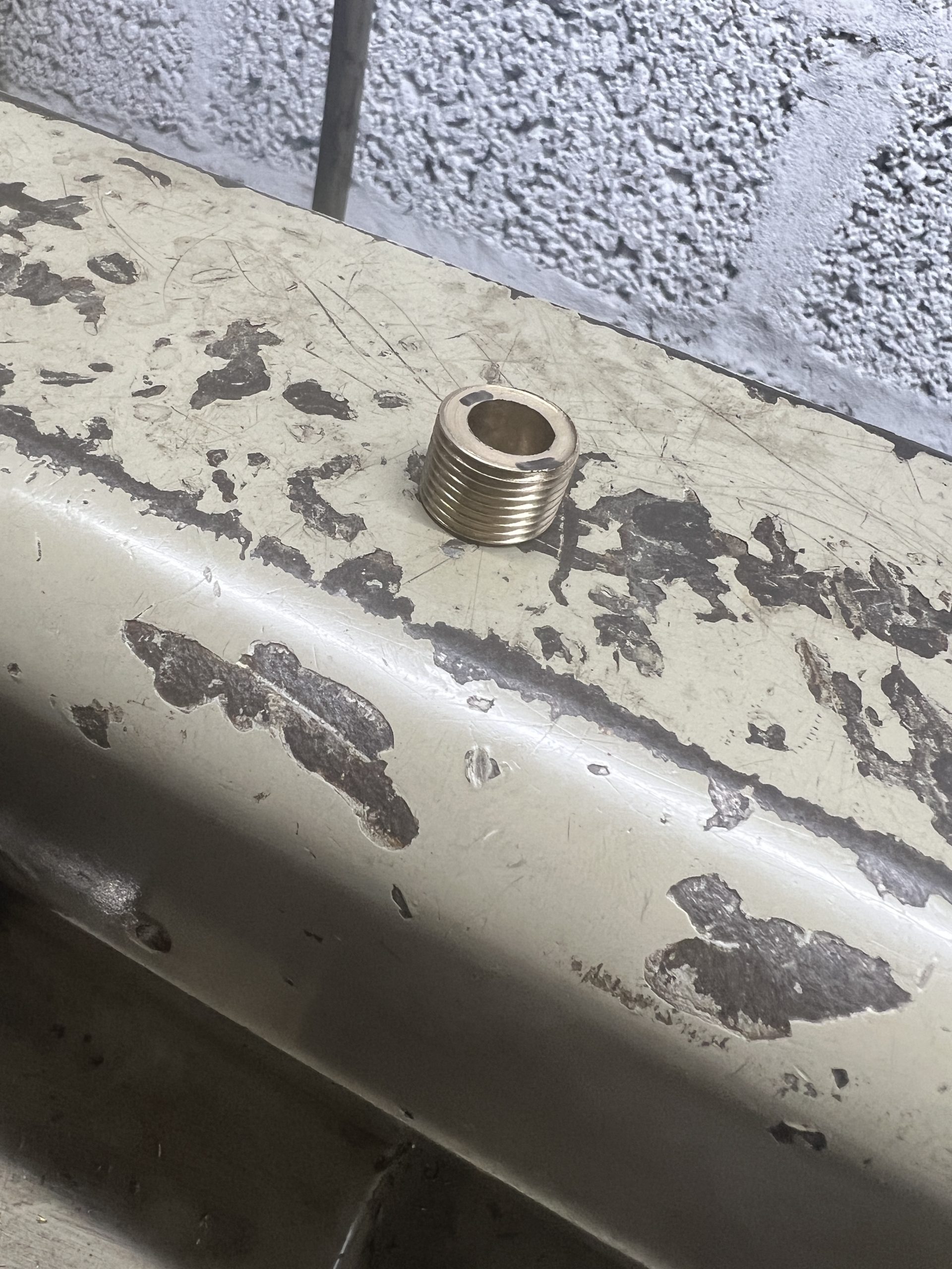 This particular repair is from a Burrell gold medal tractor. The oiler on the slide bar had very worn threads which meant it would come loose if left without repair. A simple repair of machining off the old thread and then using high temperature/strength loctiting a new LG2 bush onto it. This means the old component can live on again.